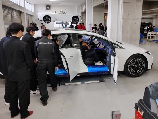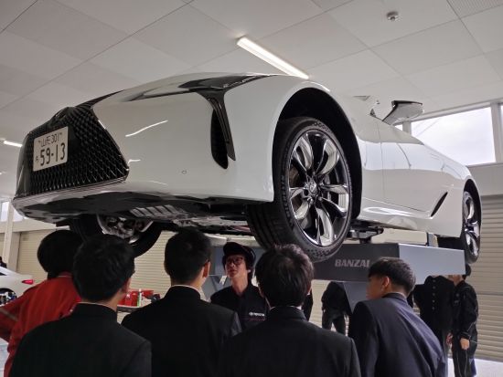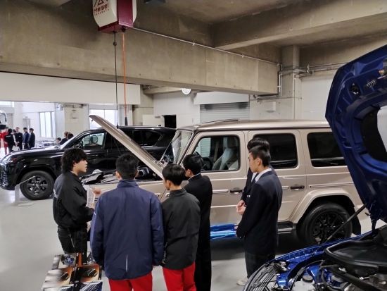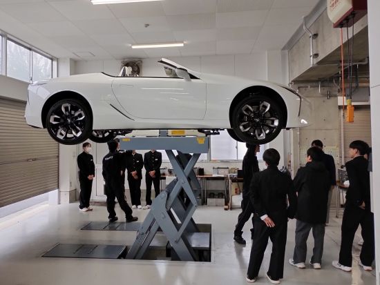 自動車工業科では山形トヨペット株式会社、山形ヤナセ株式会社、2社からご協力のもと合同授業を行い、県内の中学3年生50名がメーカーディーラーのプロ整備士からレクサスやメルセデス・ベンツなど最新の自動車整備について学びました。